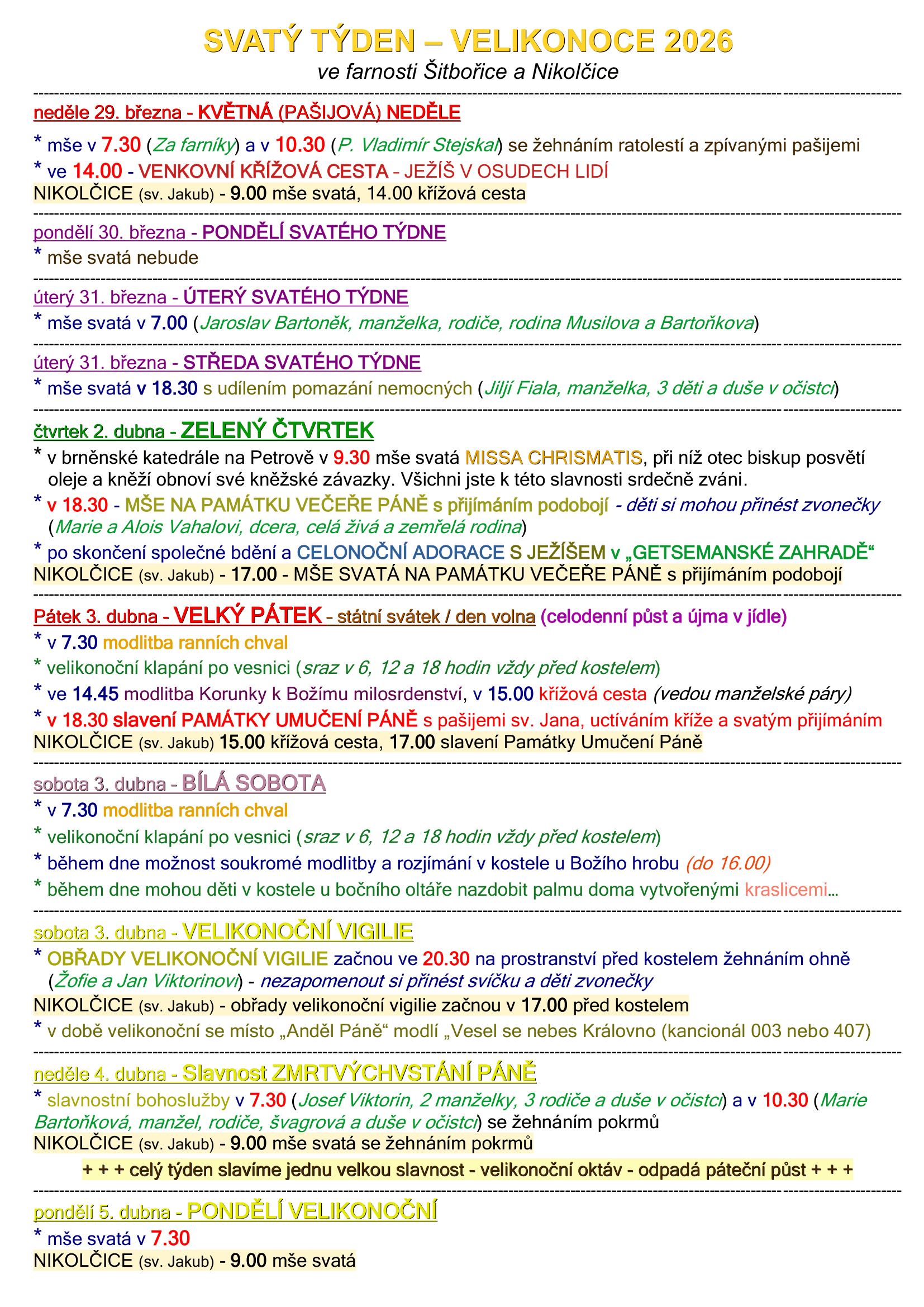Svatý týden ve farnostech Šitbořice a Nikolčice v roce 2026